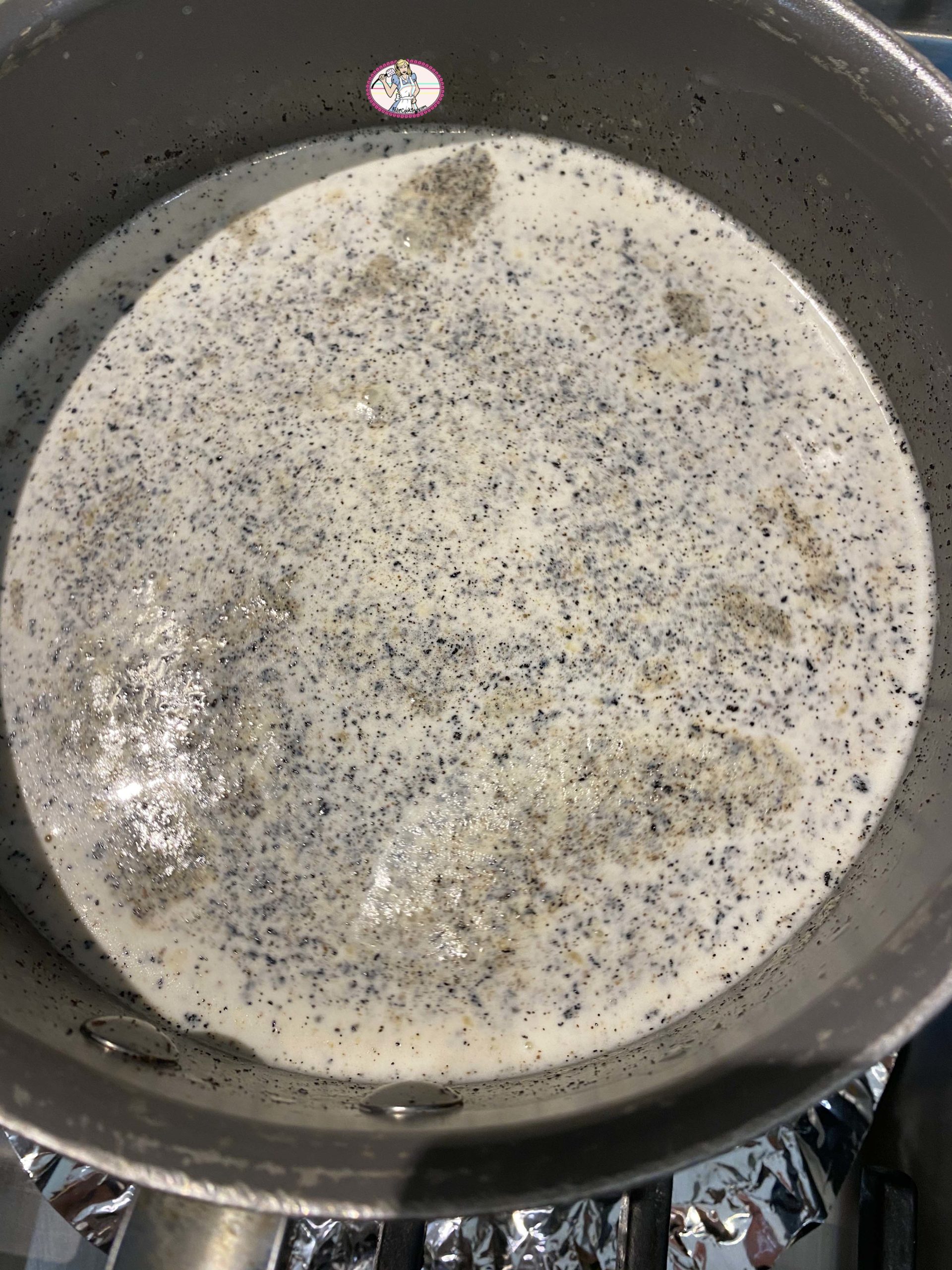 - Porter à ébullition le lait, les 70 g sucre avec les graines de vanille d’une gousse entière fendue dont vous laisserez la cosse dans le lait. Verser ensuite la crème épaisse ( ou la fleurette si vous n’avez que celle -ci) puis couvrir et laisser infuser 20 minutes minimum. Plus vous laisserez infuser plus les arômes seront présents.