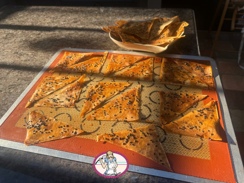 - Découper les feuilles de Wonton en deux et en diagonale avec une roulette à pizza