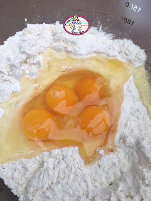 - Mélanger la farine et le sel dans un cul de poule ou à même le plan de travail