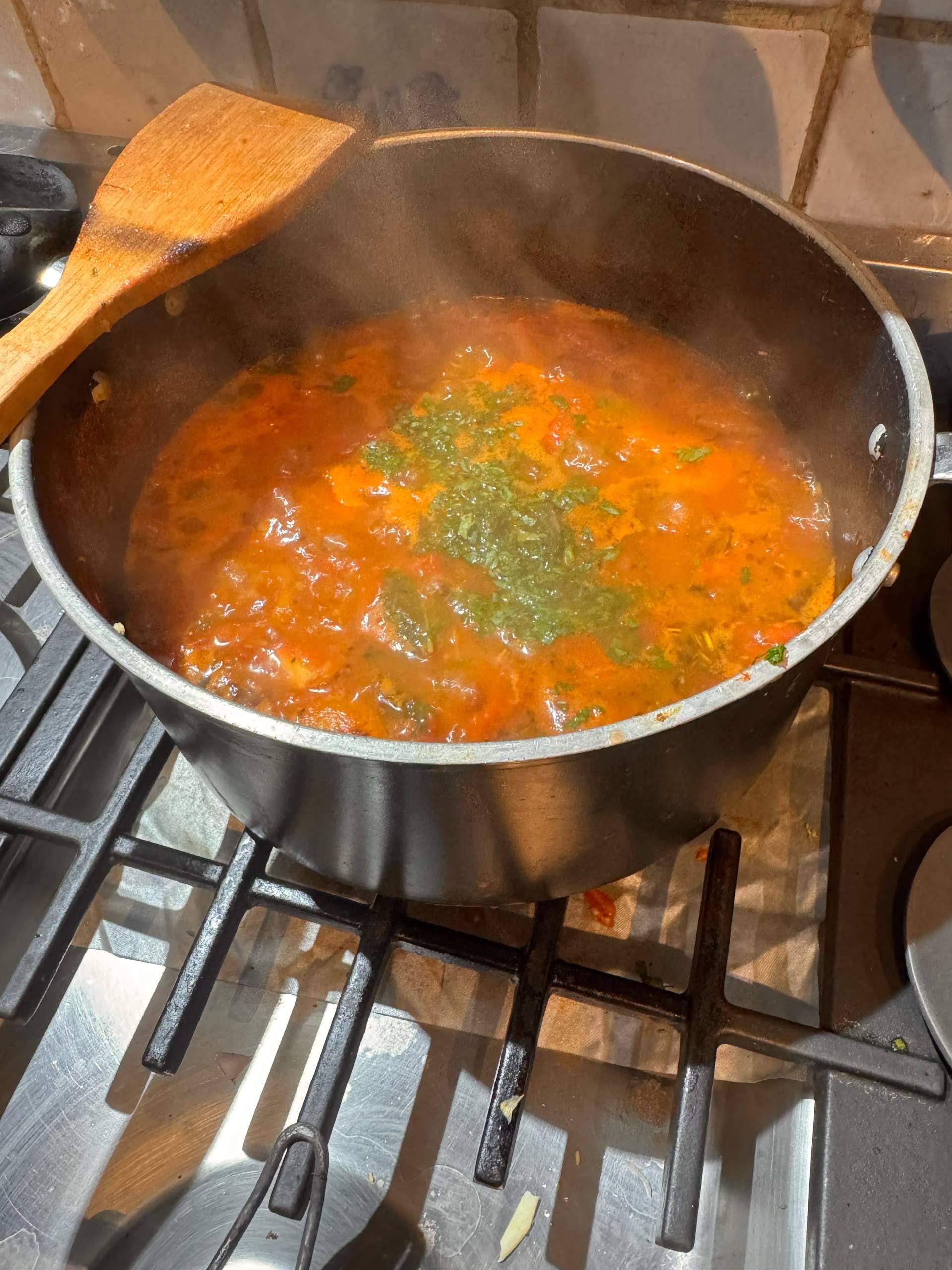 - Laisser mijoter à couvert 15 bonnes minutes avec du basilic frais.