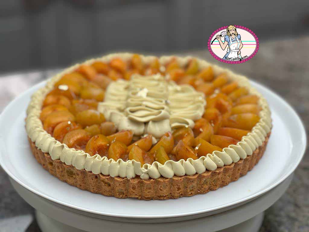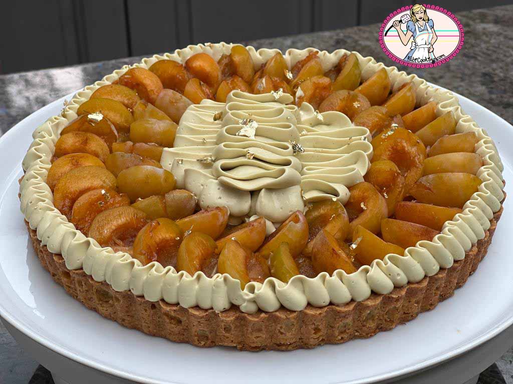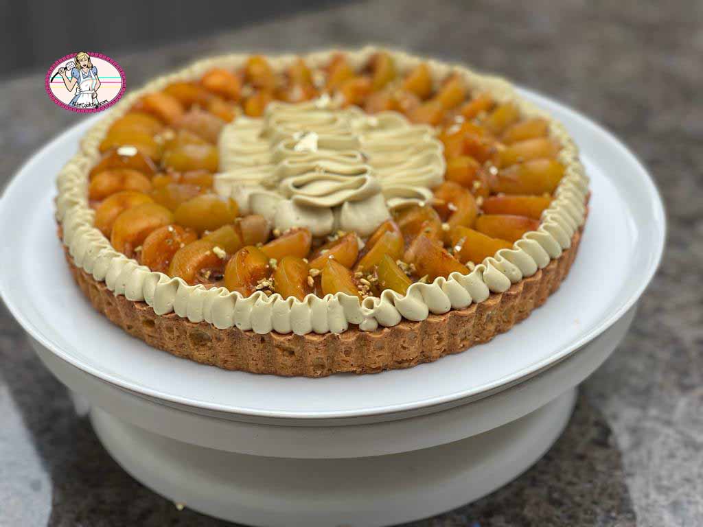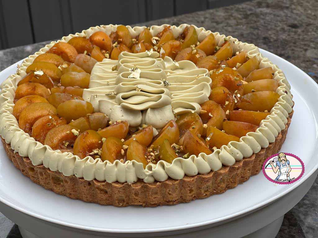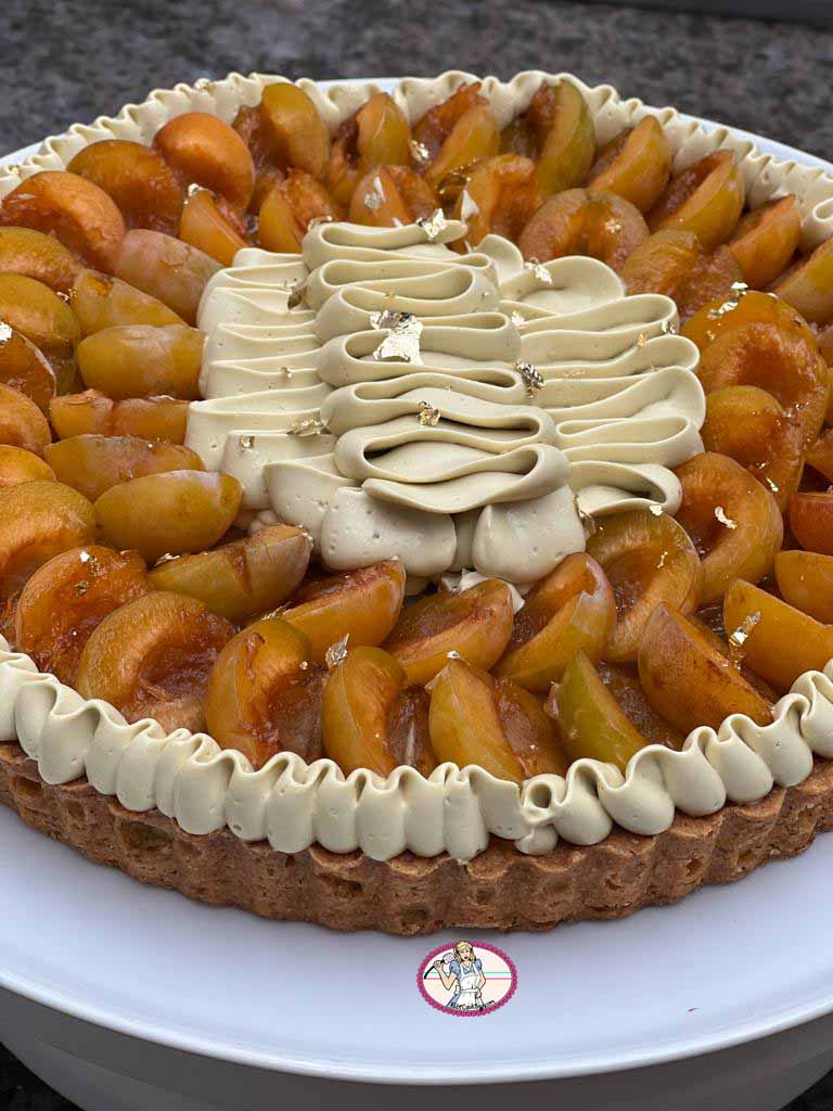 3- Associer tout cela à un petit grain exotico- oriental, la pistache et au travail: voici ma tarte aux mirabelles et son grain de pistache!