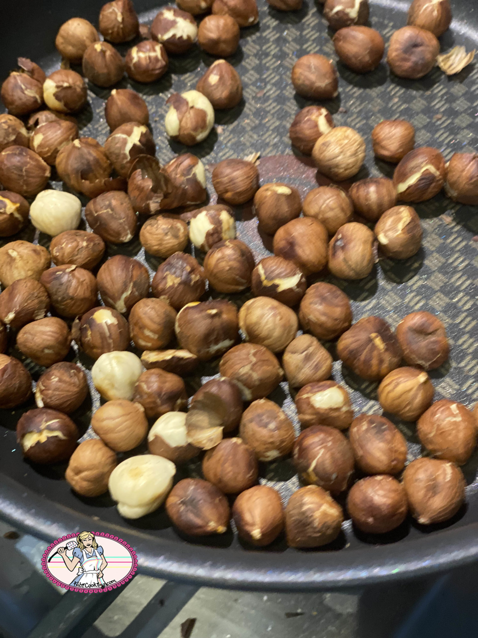 - Torréfier les noisettes en les passant au four 25 mn à 150°. Si vous avez choisi des noisettes avec peau, la peau tombera naturellement à la sortie du four. Il n’est pas nécessaire de la garder mais pas indispensable de tout enlever.