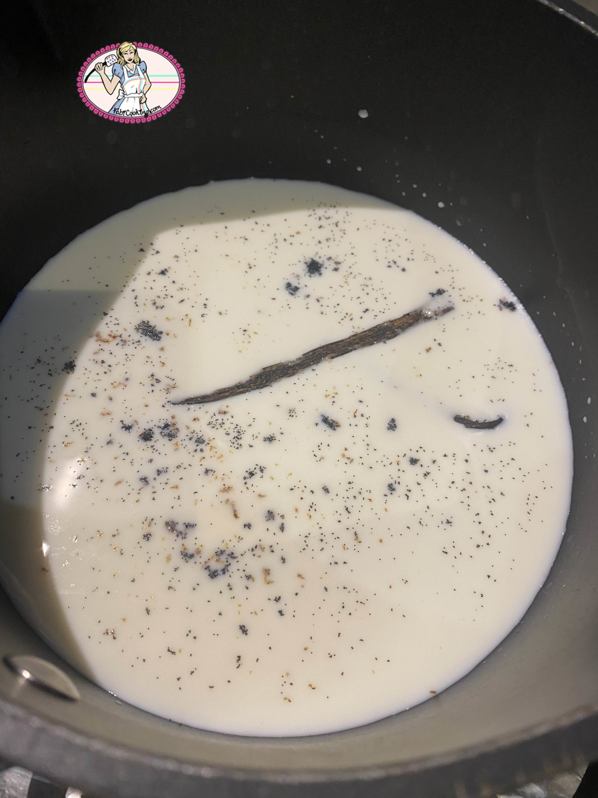 - Dans une casserole, versez le lait. Fendez la gousse de vanille en deux, grattez-en les graines et ajoutez-les au lait avec la gousse. Faites chauffer à feu moyen jusqu’à frémissement, puis retirez du feu et laissez infuser 10 mn environ.