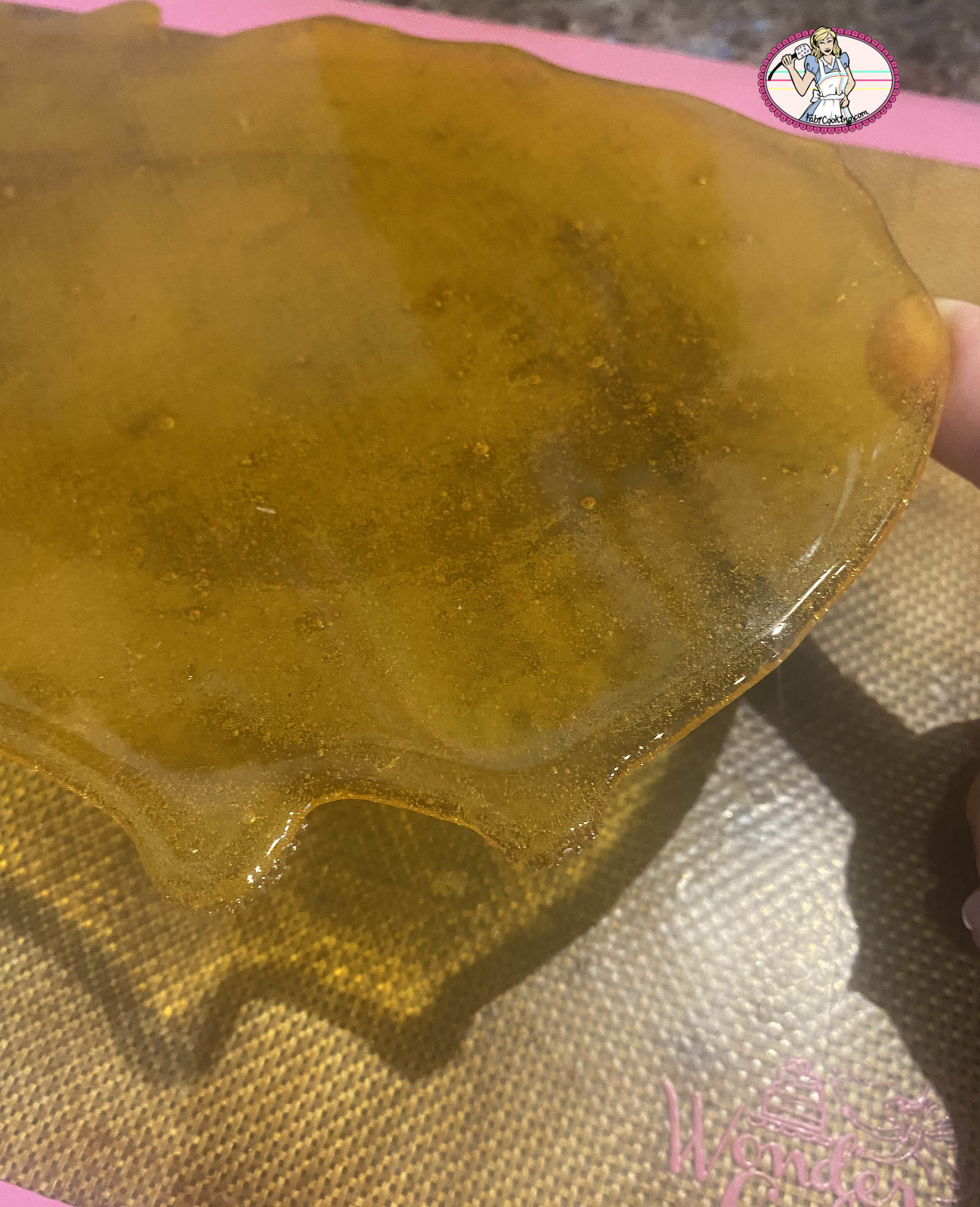 - Versez le caramel sur un tapis de silicone. Laissez refroidir puis cassez à l’aide d’un rouleau à pâtisserie.