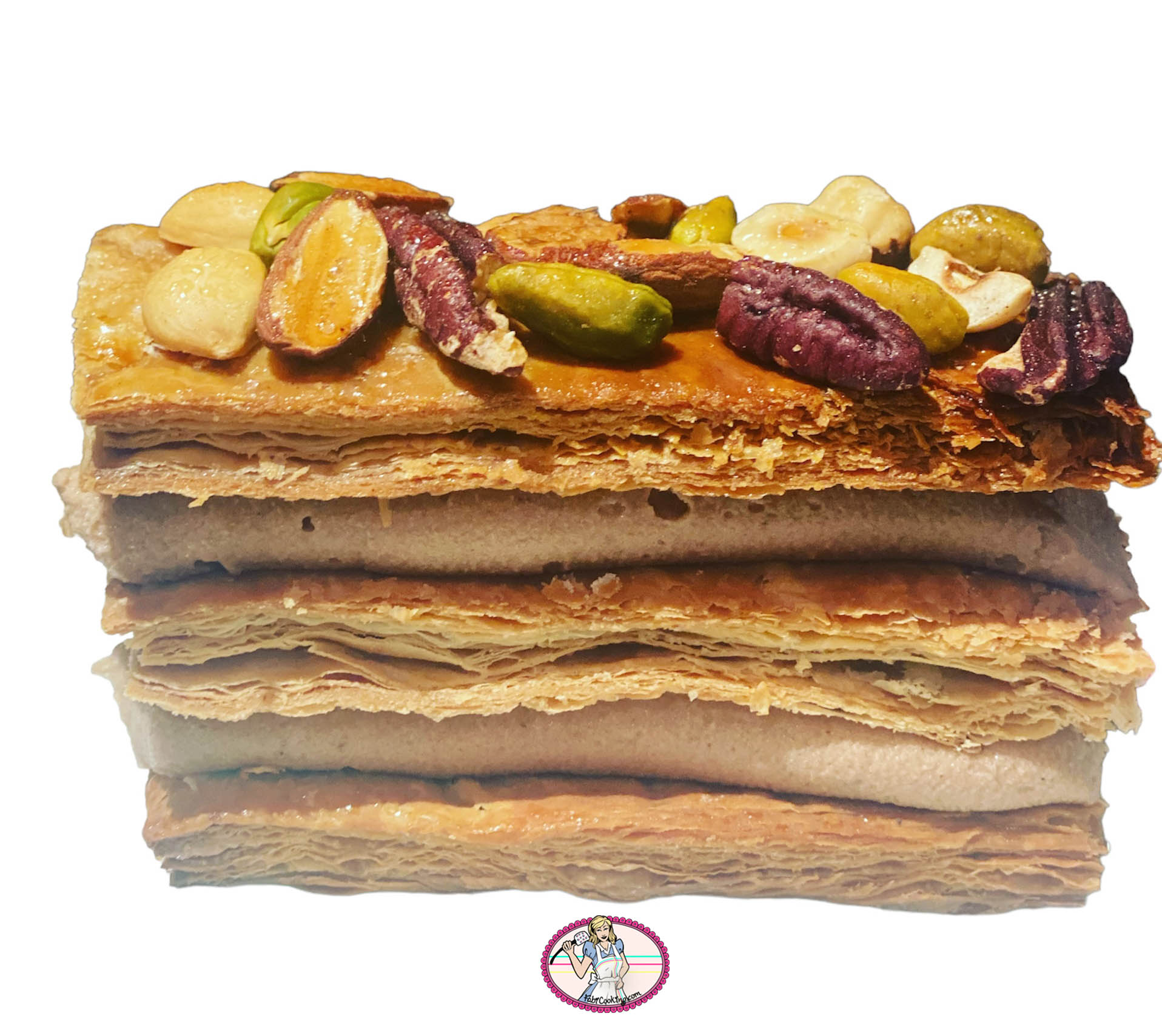 Ce millefeuille aux fruits secs et praliné change du traditionnel mille-feuille qui, même si je l’adore, laisse une place honorable à celui-ci.