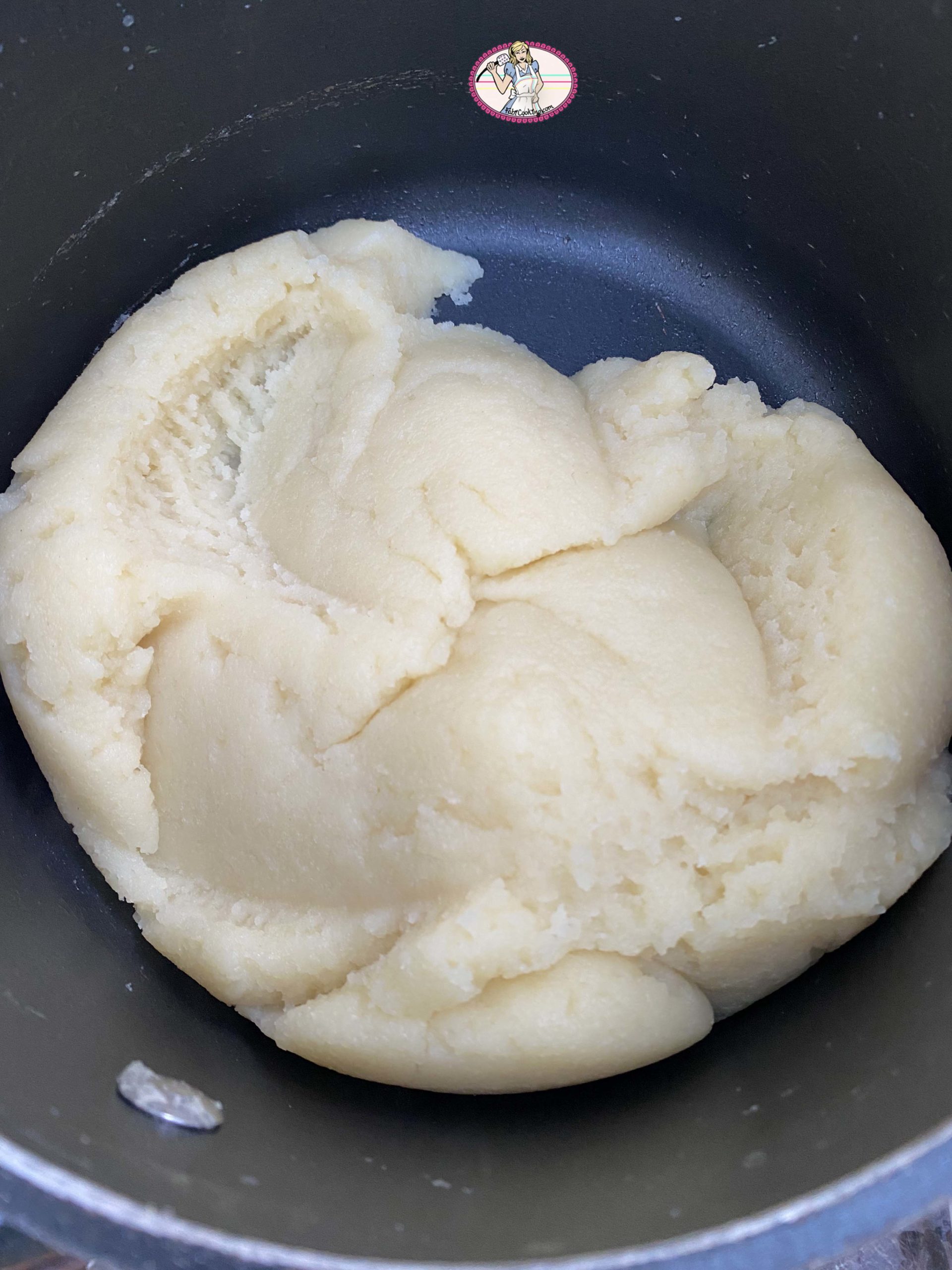 3. Faire dessécher la pâte sur feu doux sans cesser de remuer 2 à 3 minutes environ:  la pâte devient lisse, se détache du fond de la casserole en y laissant une petite pellicule.