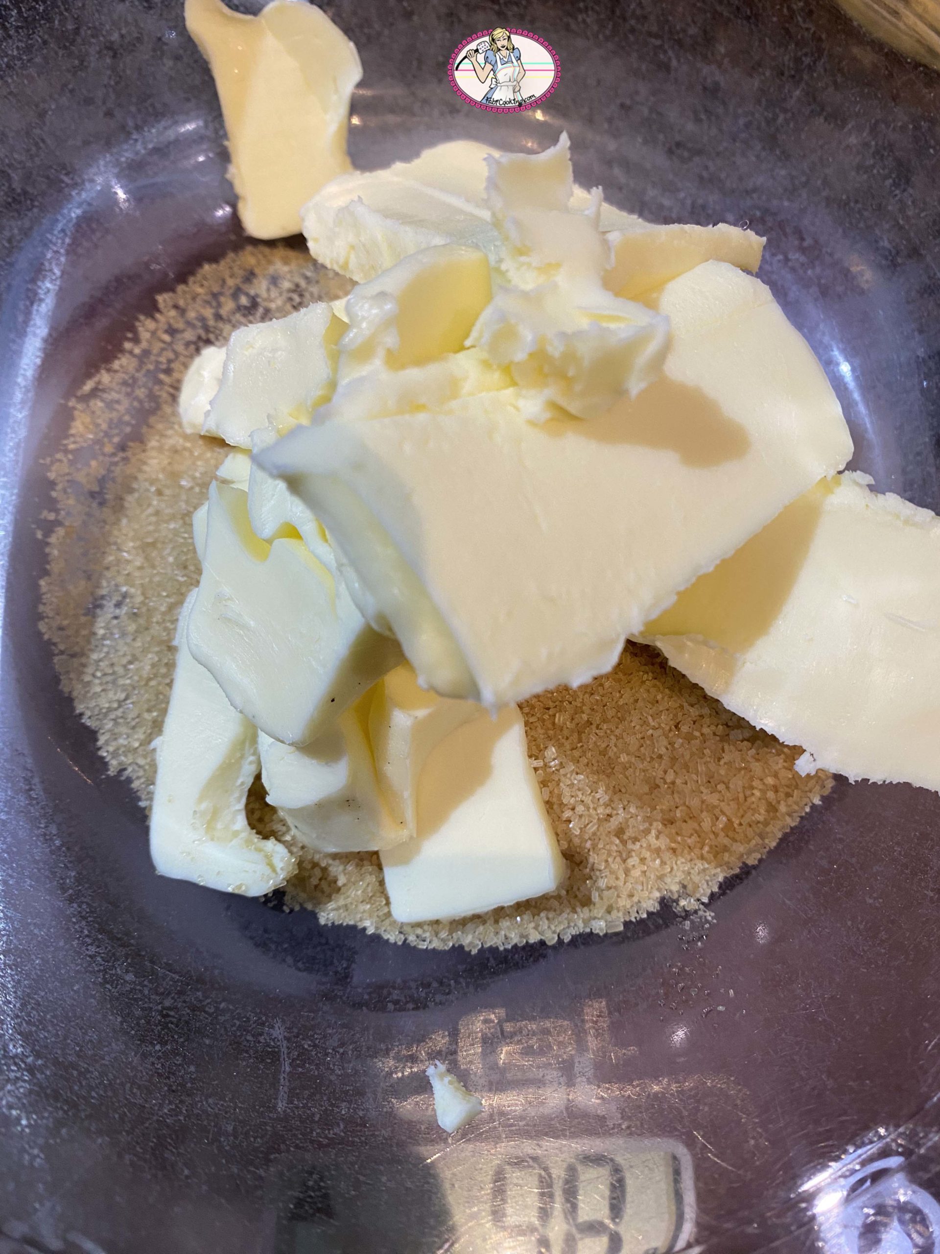 2. Dans un cul- de- poule mélanger le beurre coupé et presque mou avec la cassonade.
