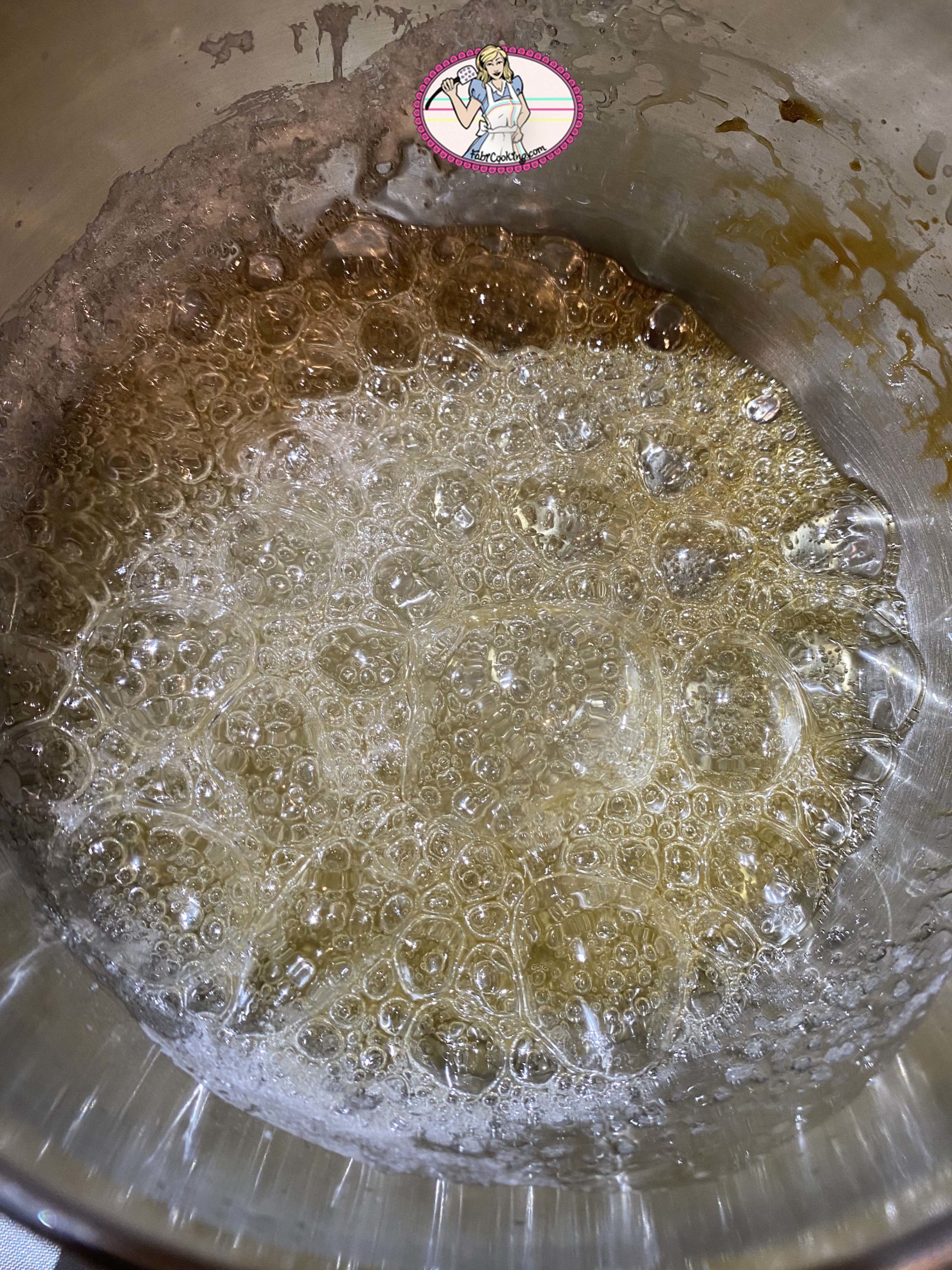 6. Remettre le tout dans la casserole et faire chauffer à feu doux en remuant continuellement en traçant des 8 dans le fond de la casserole jusqu’à ce que la crème épaississe.