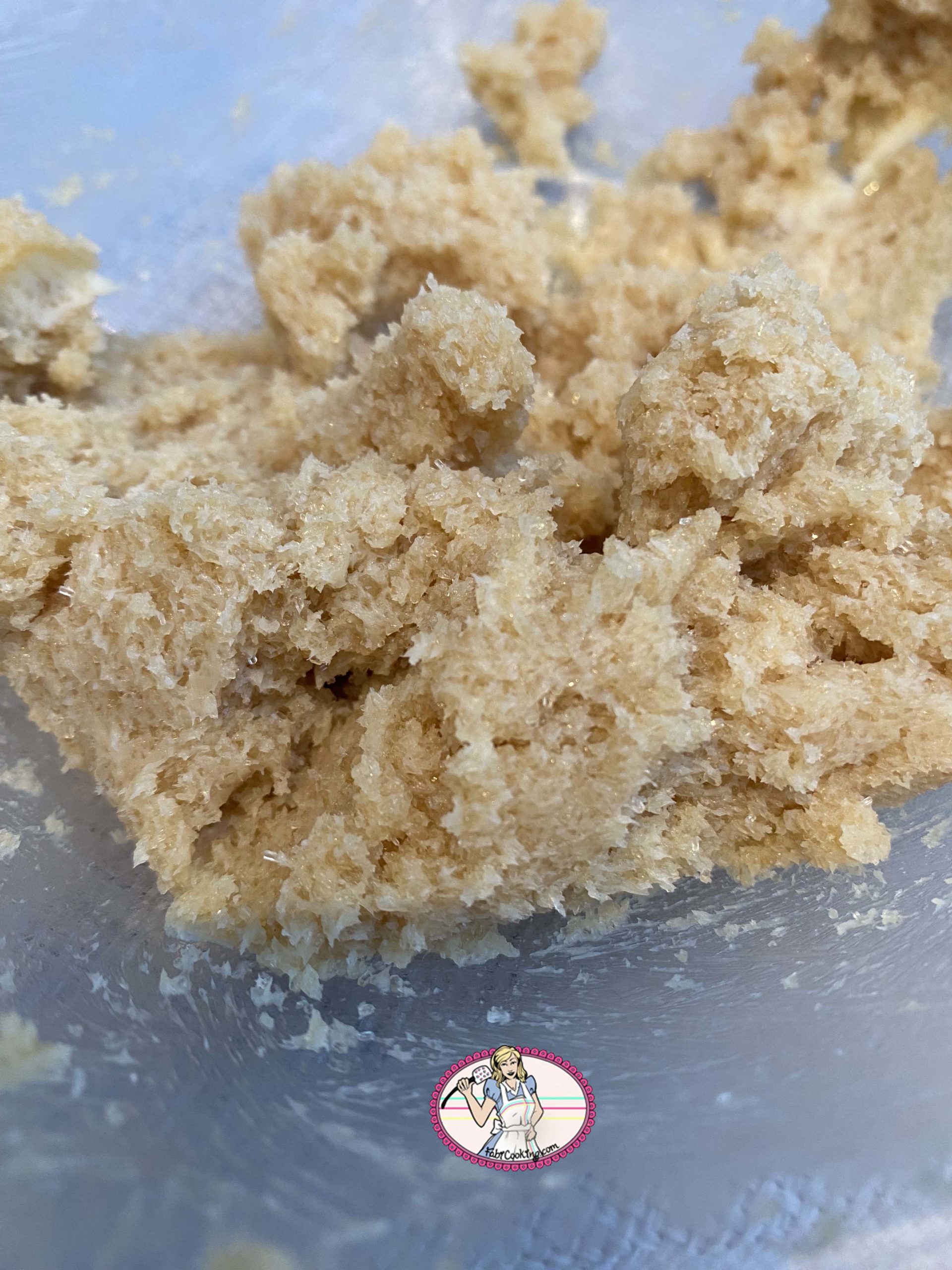 3. Ajouter la farine et malaxer quelques minutes du bout des doigts jusqu’à obtenir une pâte homogène mais dont vous sentirez les grains de sucre sous les doigts.