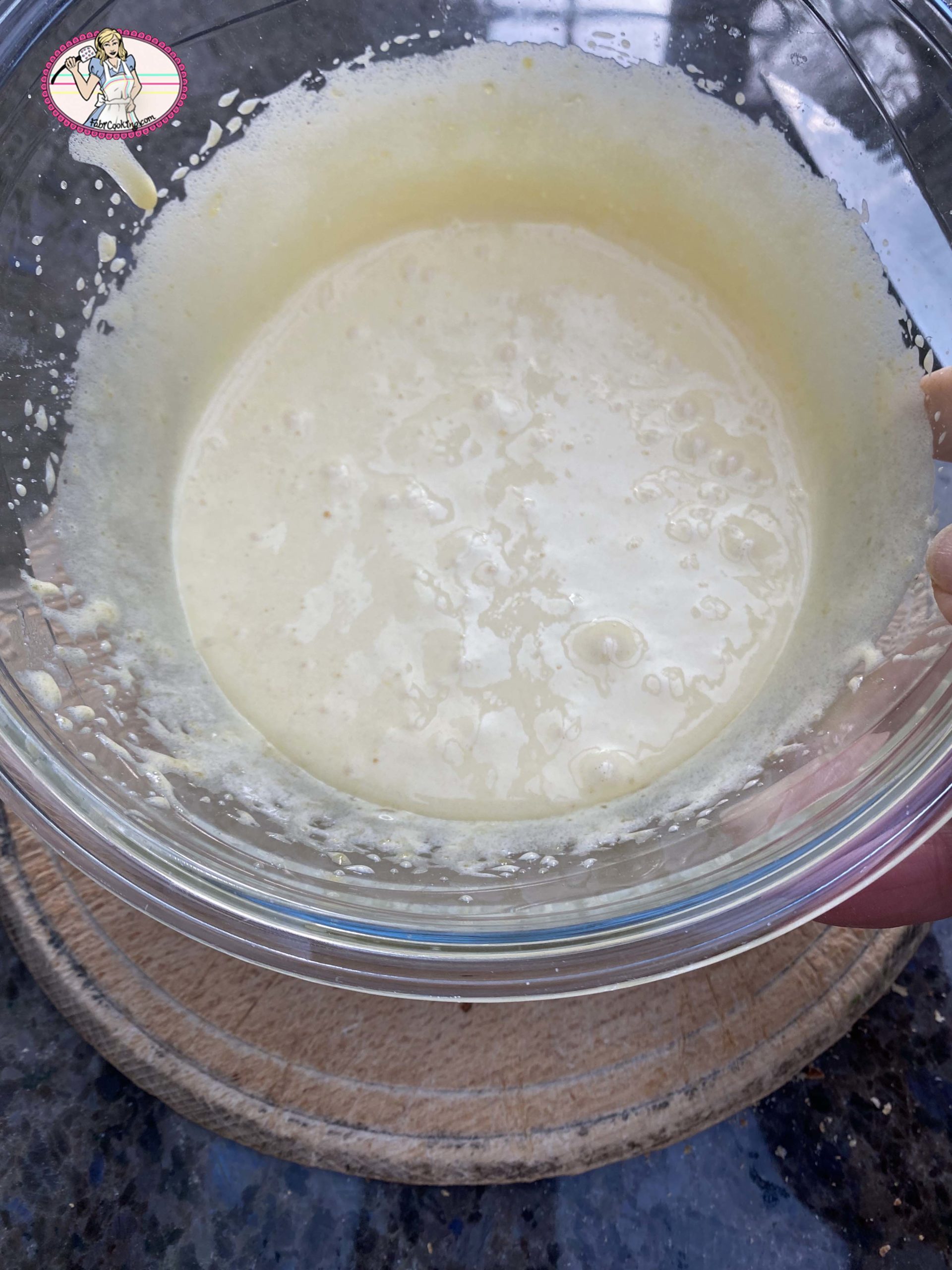 4. Ajouter la maïzena aux jaunes d’œufs blanchis et mélanger jusqu’à obtention d’une texture homogène.