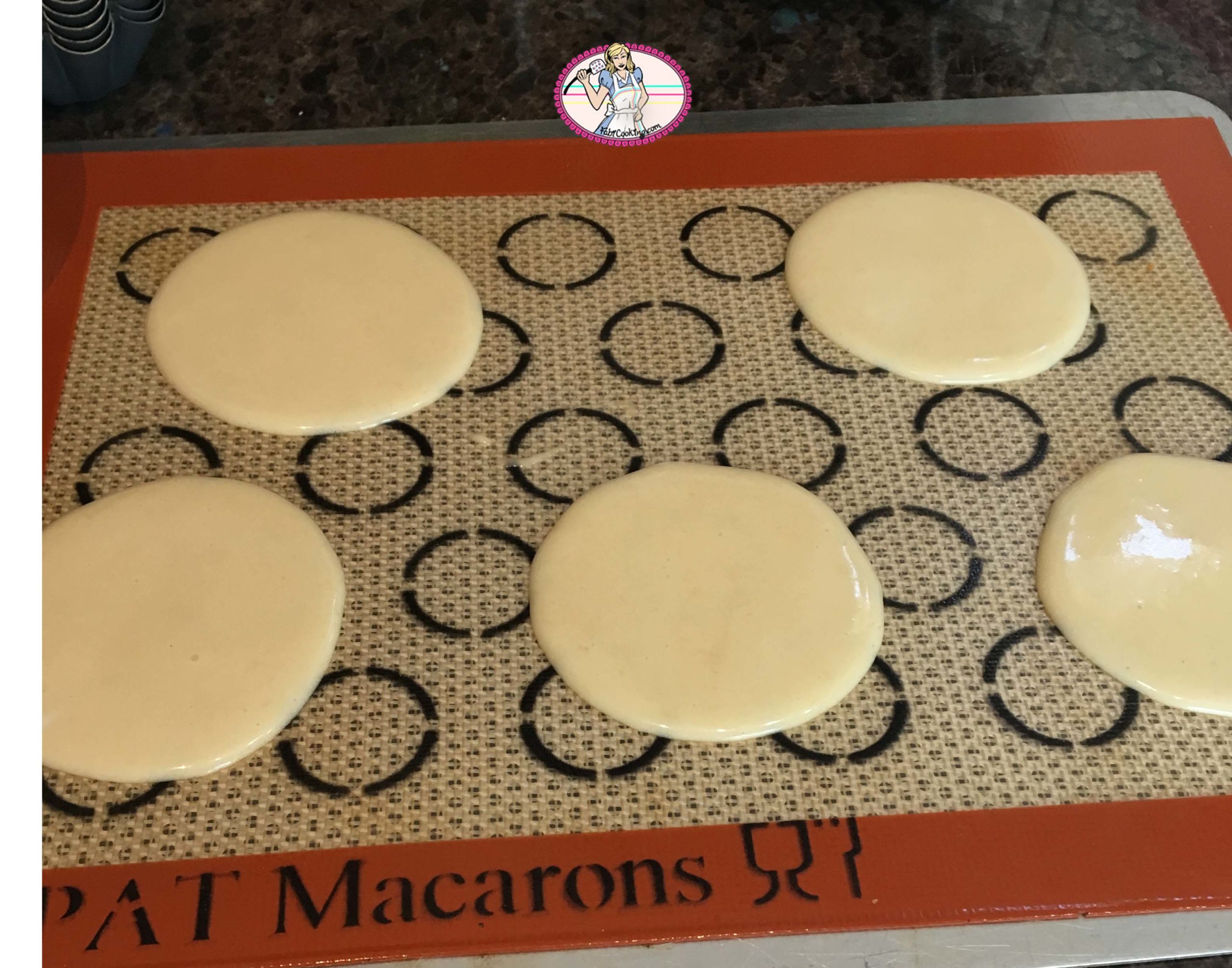 - Tremper l’index dans le lait et le passer sur la surface des tuiles pour obtenir des ronds de 8 cms environ. Attention à ne pas obtenir des bords plus fins que le centre
