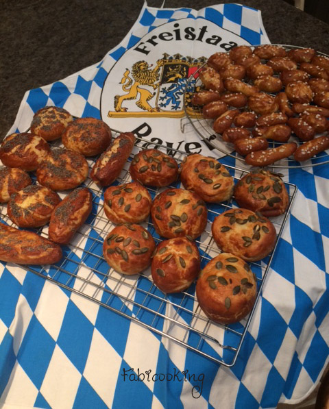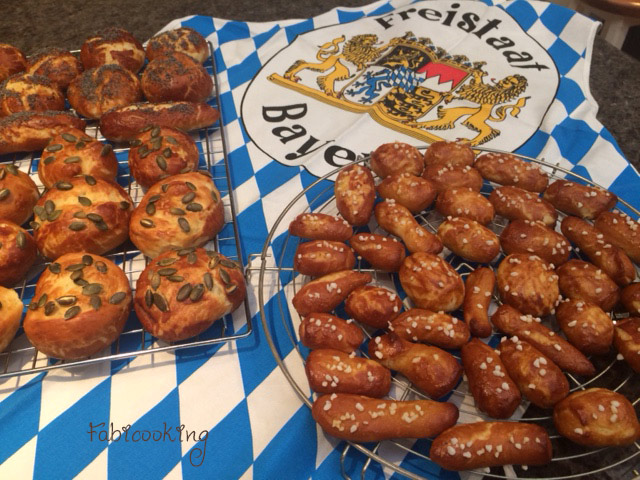 - Battre à la fourchette un oeuf et l’allonger avec 2 cuillers à soupe d’eau. Badigeonner au pinceau chaque Bretzel luis parsemer de quelques grains de sel, de graines de courge, de sésame ou de pavot. Cuisson 10 à 12 minutes .