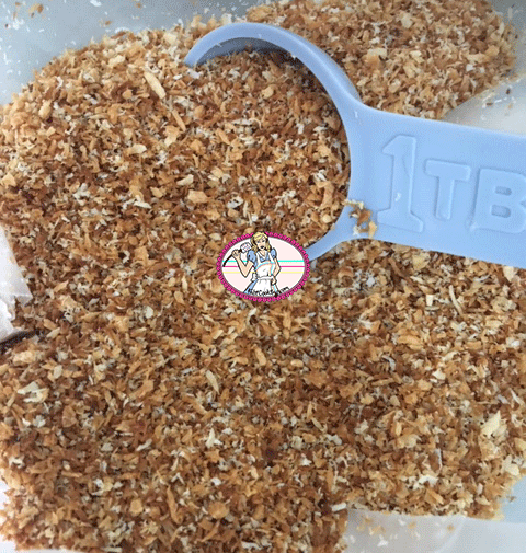 2- Torréfier la noix de coco râpée dans une poêle, sans ajout de matière grasse et sur feu moyen en mélangeant pour éviter qu’elle ne brûle, pendant 4 minutes environ. Je vous conseille d’en préparer une plus grande quantité: la noix de coco c’est bon en rochers, sur une glace etc etc…. Réserver.