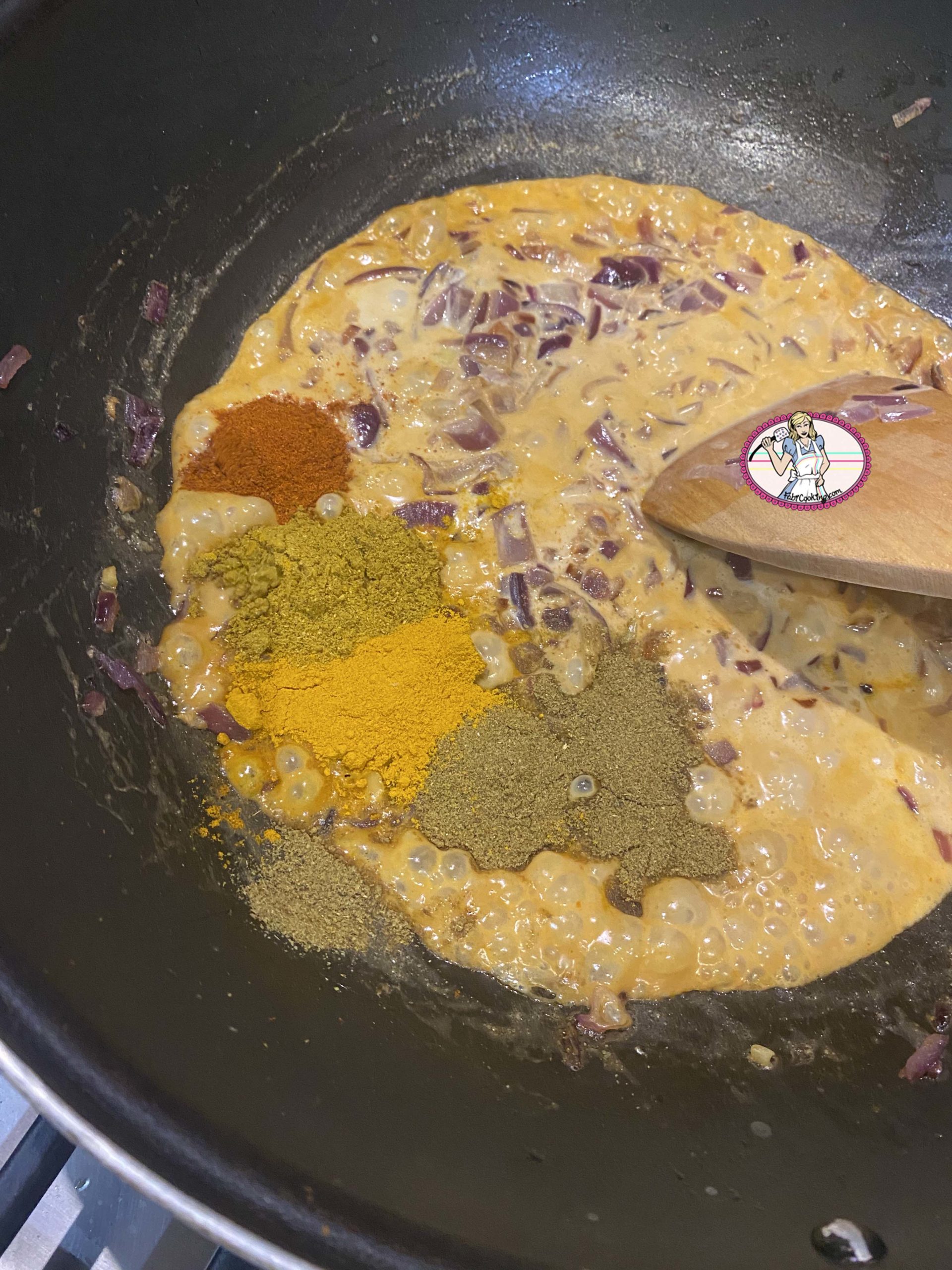 4. Ajouter toutes les épices: curcuma, cumin, paprika et curry en poudre