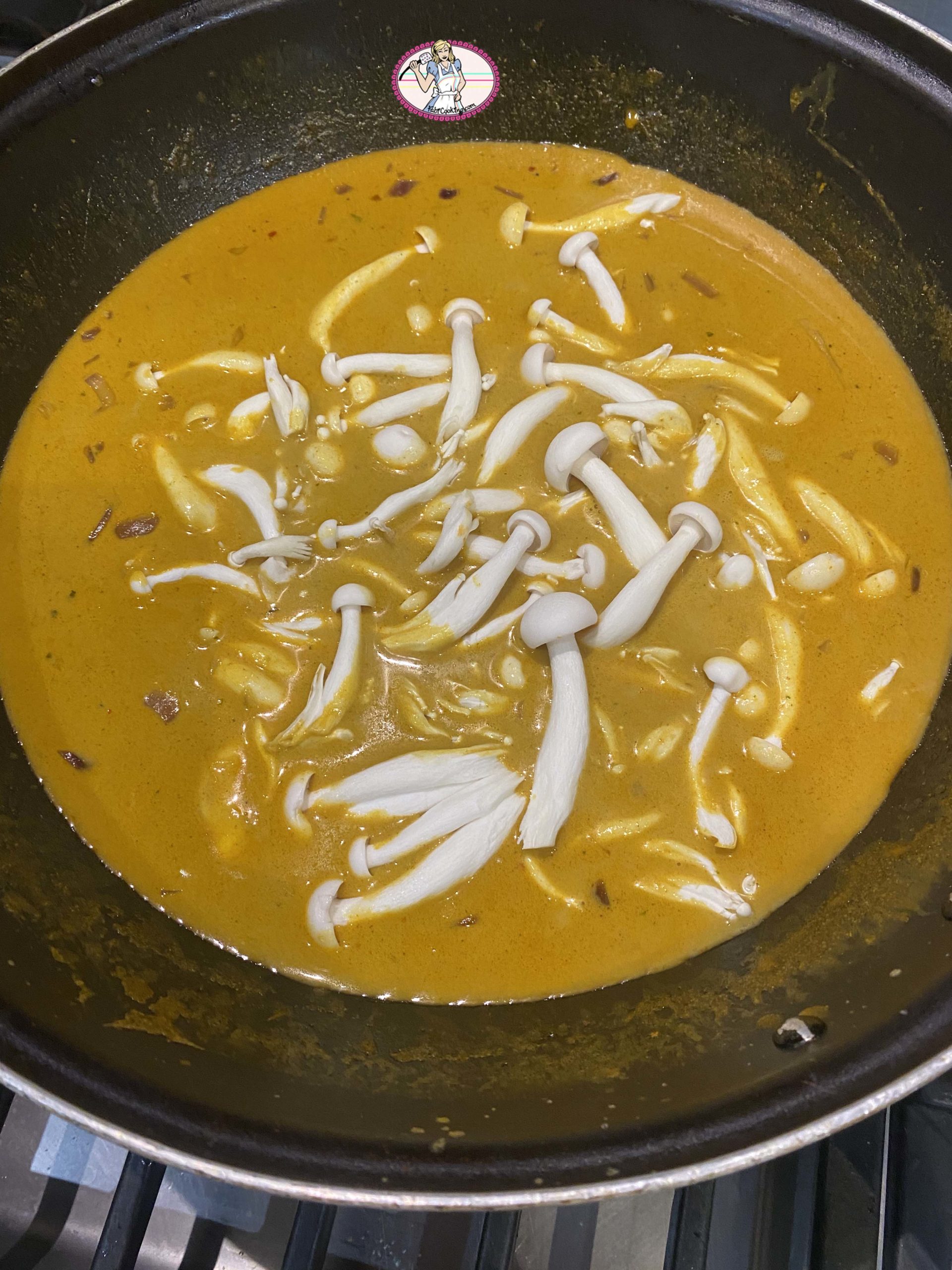 3. Verser le tiers du lait de coco et laisser mijoter quelques minutes jusqu’à ce que vous remarquiez des petites bulles de matières grasses à la surface.