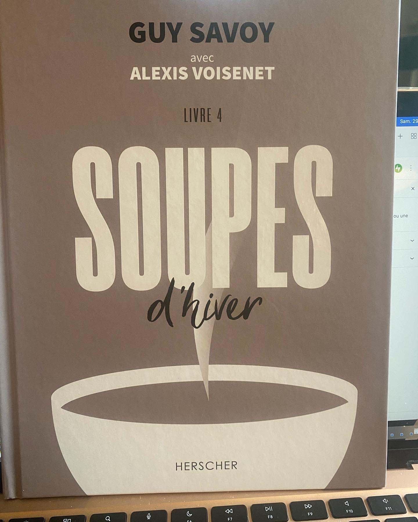 Par hasard, en regardant la télévision l’autre jour, je l’aperçois, invité d’une émission dont je ne me souviens plus du nom. Il présentait son nouveau livre de recettes: Soupes d’hiver. Il en énonçait quelques recettes étonnantes: celle à la choucroute, celle à la raclette… bref, des soupes que je n’aurais jamais imaginées. Au modeste prix de 12€, comme le disait ma grand- mère: Cela ne vaut pas la peine de s’en priver!