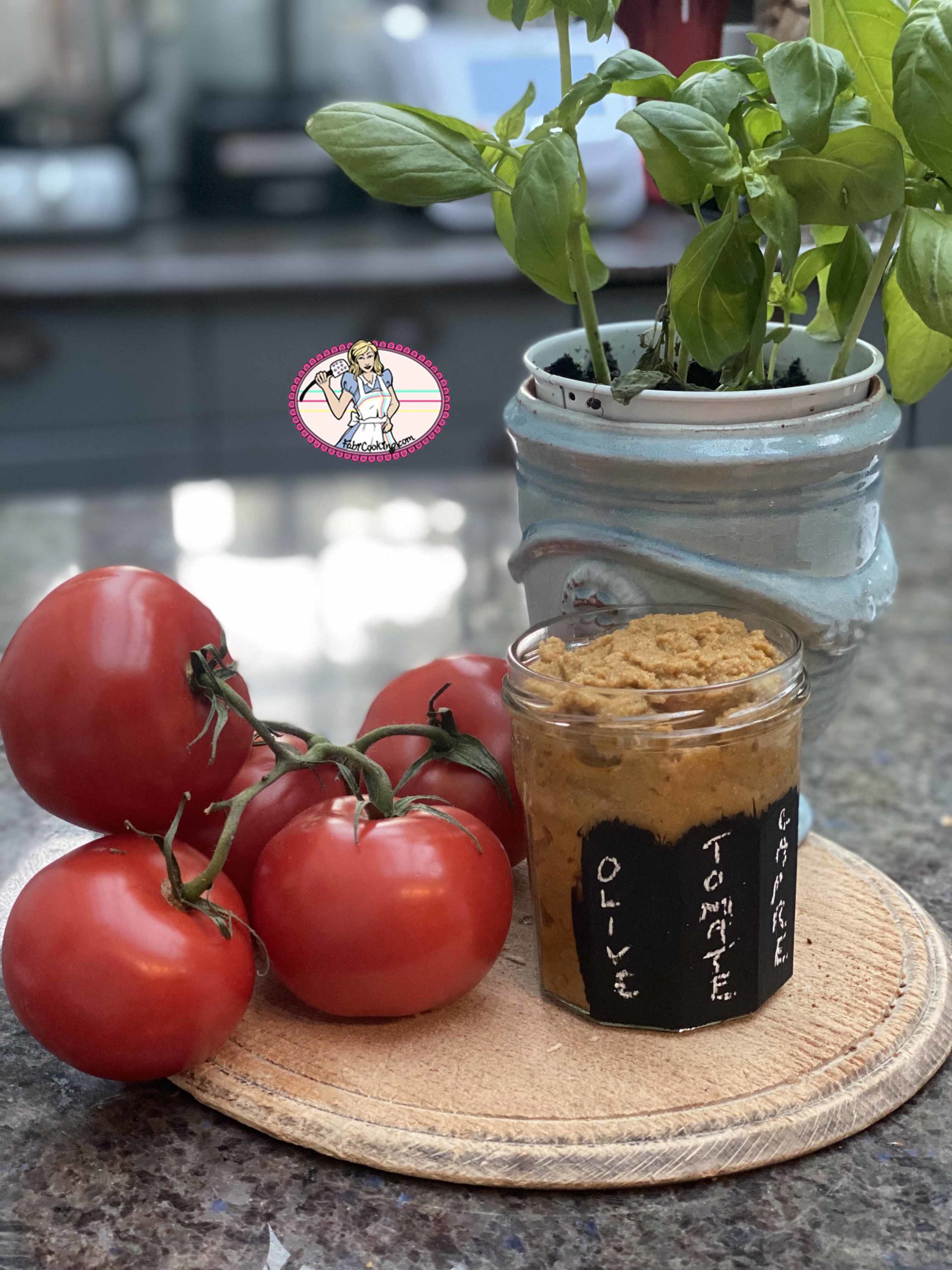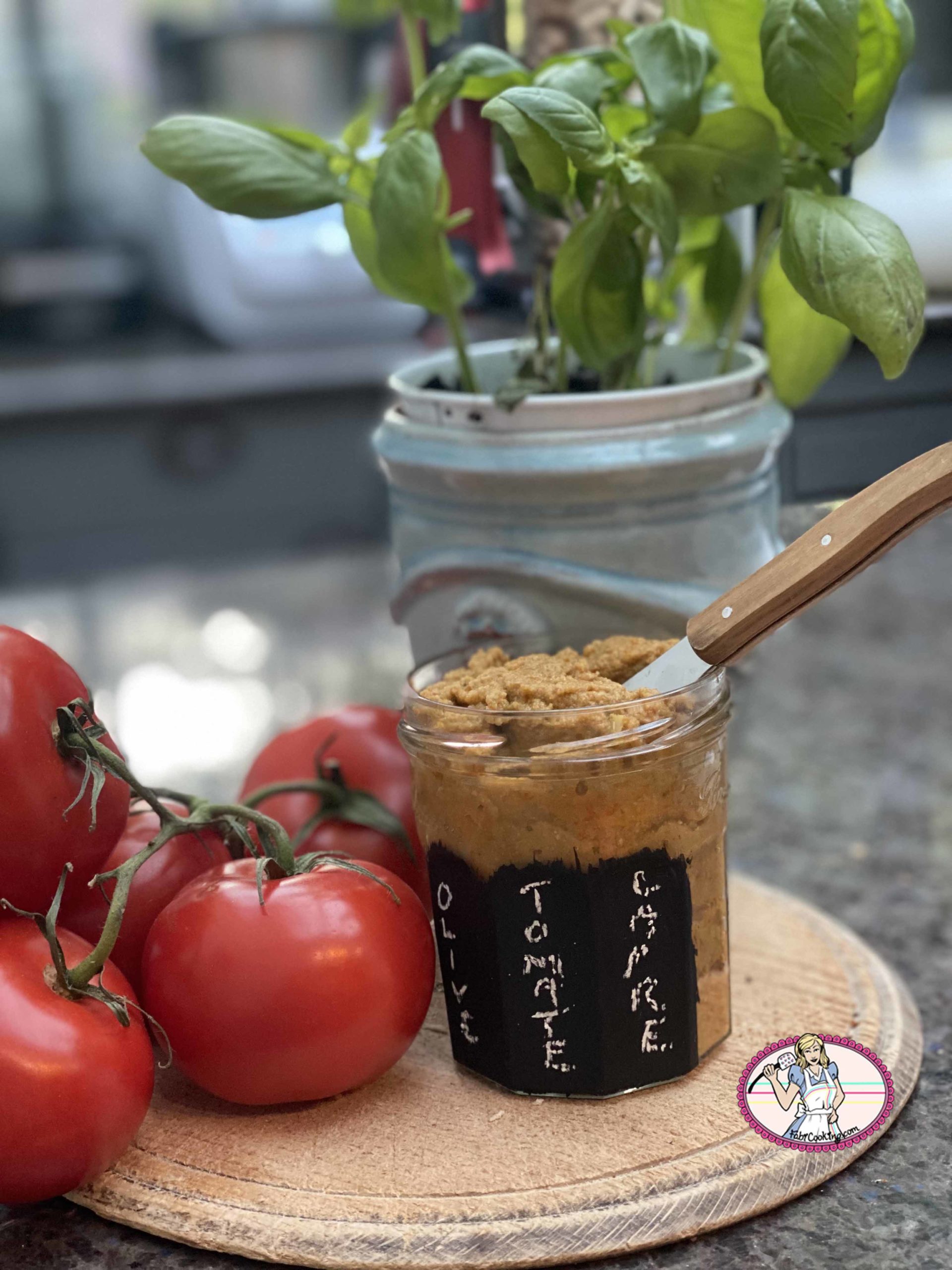 Cette tapenade provençale verte et rouge ( rouge pour les tomates séchées) , je l’ai découverte il y a quelques années en Corse et comme j’en reviens, je me suis dit: plutôt que de n’en déguster seulement pendant les vacances – donc une fois par an- je vais m’en faire un ‘tit bocal et en aurai autant que je veux! En plus, c’est un vrai délice avec » the best focaccia », hum, on s’en lèche les babines.