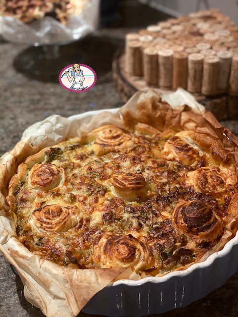 7. Comme ma pâte feuilletée était plus grande que mon moule, j’ai utilisé l’excédent pour en faire de petites roses sur le dessus de ma tarte rapide courgette poireau gorgonzola