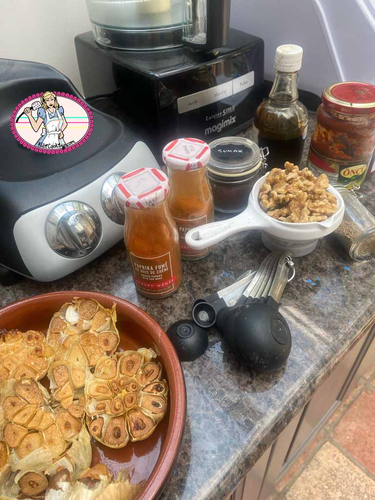 C’est une pâte de poivrons avec des noix, des épices et de le mélasse de grenade qui lui apporte une jolie acidité ( vous pourrez la remplacer par un peu de jus de citron).