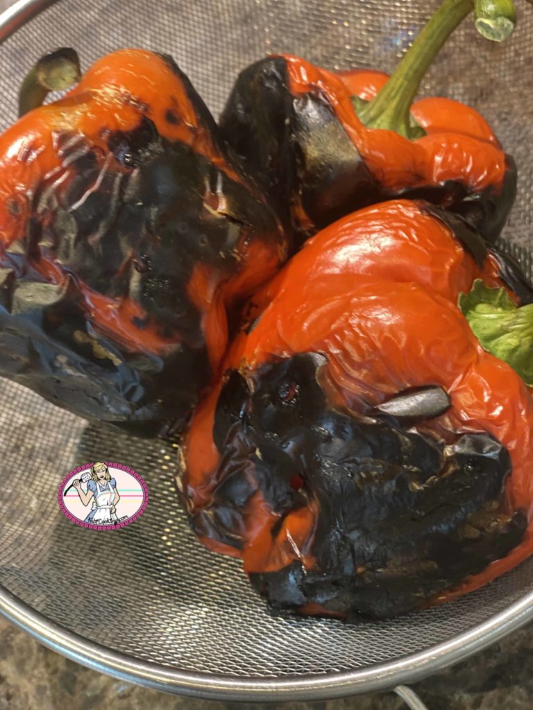 - Rincer les poivrons et les placer sur une plaque avec une feuille de cuisson ou de papier alu dans le four, au BBQ ou directement sur une plaque perforée posée sur le bec à gaz. Quand ils deviennent bien mous, donc cuits, les laisser 5 mn avant de les placer dans un sac en plastique bien fermé. Au bout de 15 mn, vous les éplucherez avec facilité.